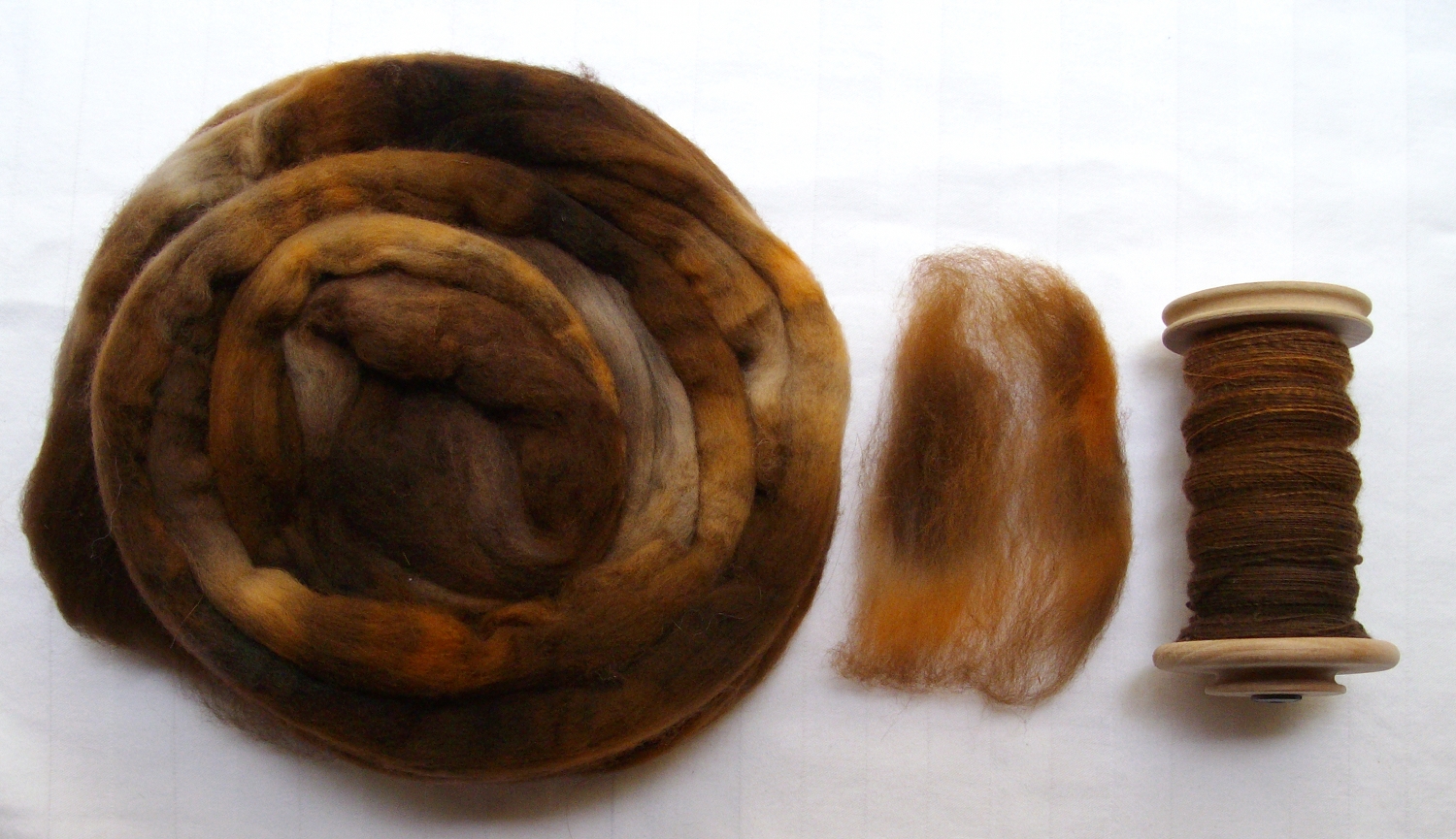 The Gotland top was peculiar to spin. It’s fine and silky with a bit of a wave — unnervingly like hair, in fact — and there was a thin line between perfectly drafted and drifting apart completely. It really, really wanted to be spun fine and semi-woolen: worsted spinning gave me wire, and with its long staple and slippery texture, I do not have the chops to even attempt long draw with this. I went with what worked best, and got a beautiful, light, slightly lustrous, drapey 2-ply yarn that I think will make an elegant wrap. It’s a bit prickly — perhaps I still put in too much twist, or perhaps that’s just the nature of the fibre — so I may edge it with some silk or some dyed Stansborough Grey wool, if there’s any left by the time I get around to buying it.