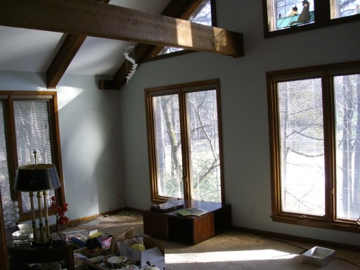 This room has even more light, and contrary to what this picture indicates, is about the same size as the last one. Plus, it looks out into the trees. However, I’d be sharing it with himself’s computer desk, which is…um…a disaster area.