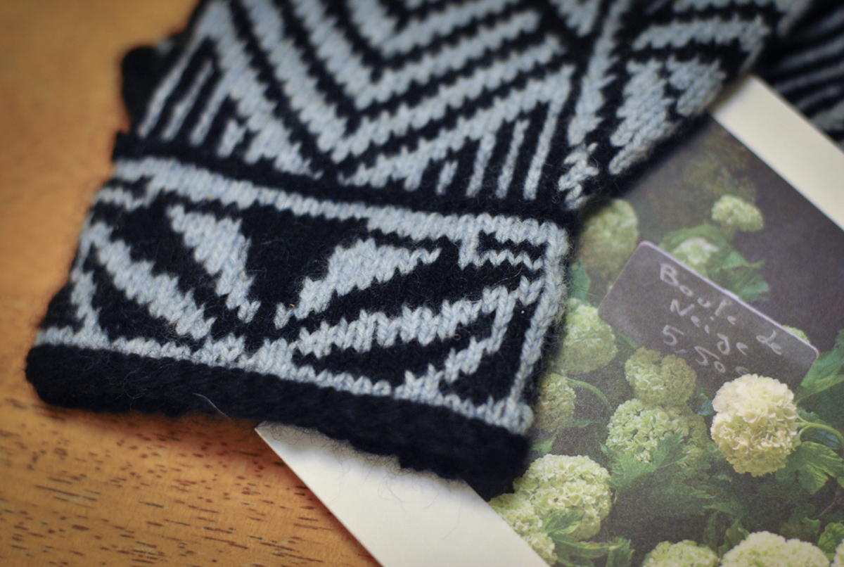 The Jazz Age Mittens are inspired by the fabulous geometric designs of the Art Deco period.