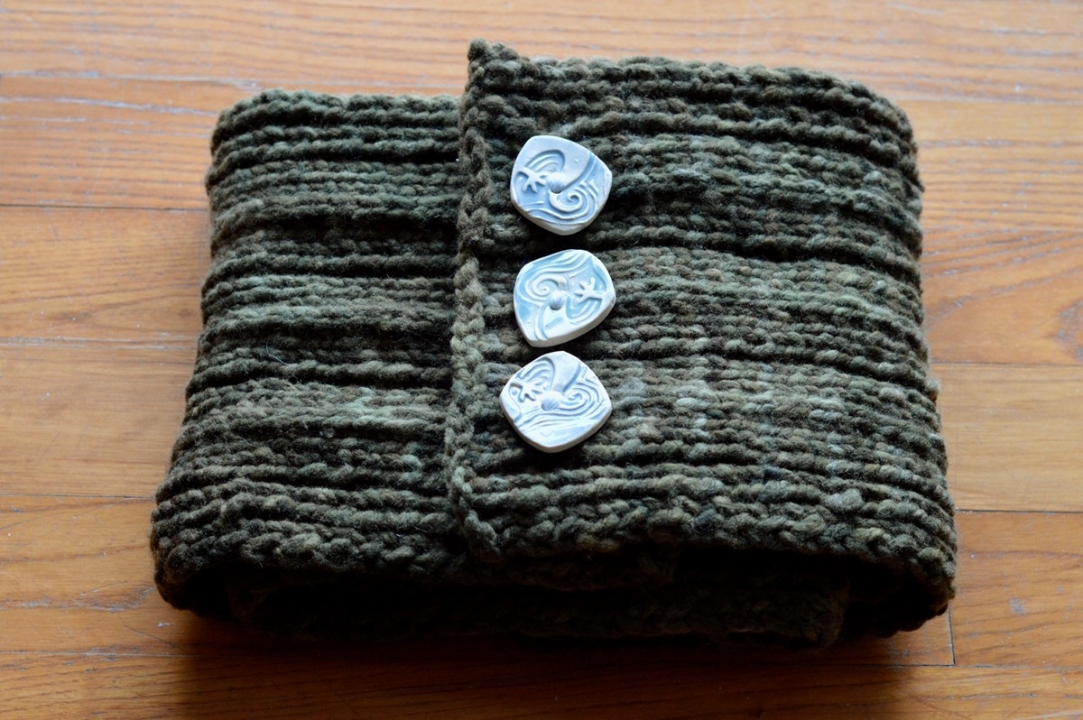 The buttons on that top cowl-length sample are a custom size of a design I found in lindabelinda’s Etsy shop; I’m so pleased with how they worked out.