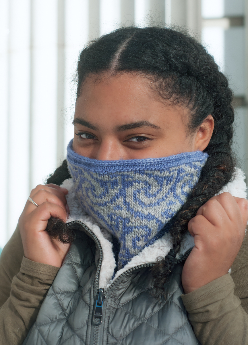 On the top of the list was Gyre: my swirly, colourwork cowl with the optional striped lining. This pattern needed new photos, though, and it took a while to get that together. Now the new photos are here, and they’re fabulous (in my not-unbiased opinion, and thanks entirely to the talented Gale Zucker and model Ariana McLean), and it’s time. The new version of Gyre is now on Ravelry, and it’s 30% off until November 10. You don’t need a coupon code: the discount will be applied at checkout.