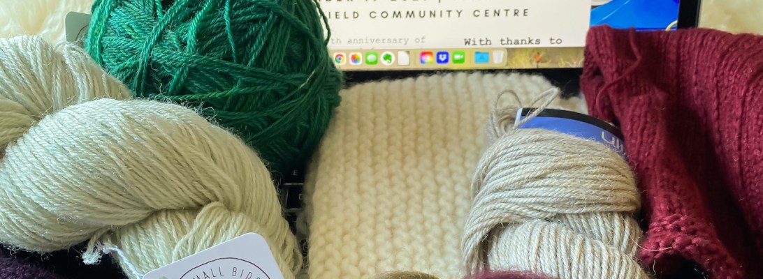 Now, this is not my first last-minute-travel-project rodeo, and though I was tempted to also spin the yarn for these things, I knew that that way lay madness. Besides, that’s much of the point of a stash, surely: to have exactly the right yarn when inspiration strikes, just waiting for you to pull it out and get knitting. So I did. I found some worsted weight from Imperial Yarn in a heathery bottle green, and off I went.*