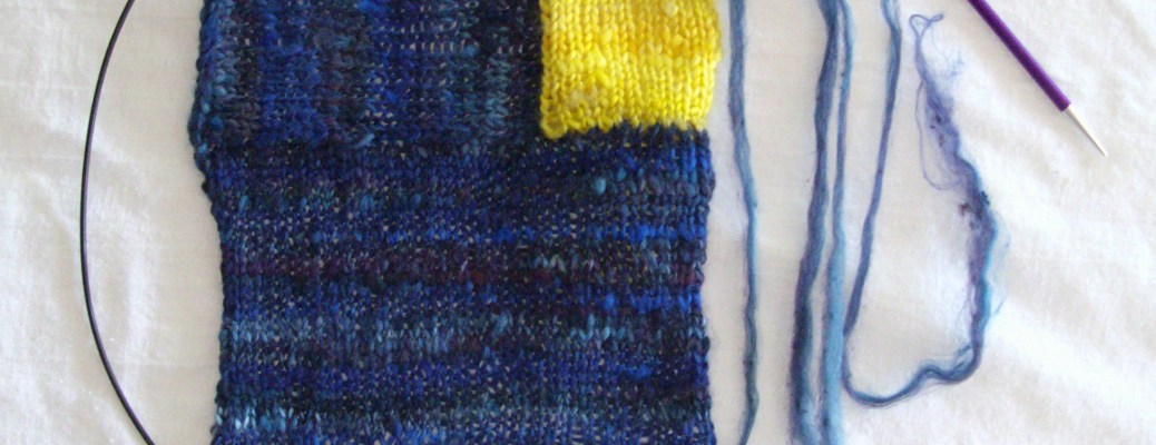 Being part 3 of a series of tutorials for the Mawata Colossus project. The first part explains how to knit with mawata or silk hankies, and the second gives a recipe for the Picture Window block. Because mawata don’t come in a standard yarn weight and you may have your own preferences for the gauge and size of your blocks, these posts describe how I make the blocks and give guidelines on making your own. They’re more sort of recipes, rather than proper tested, tech edited patterns. Continue reading