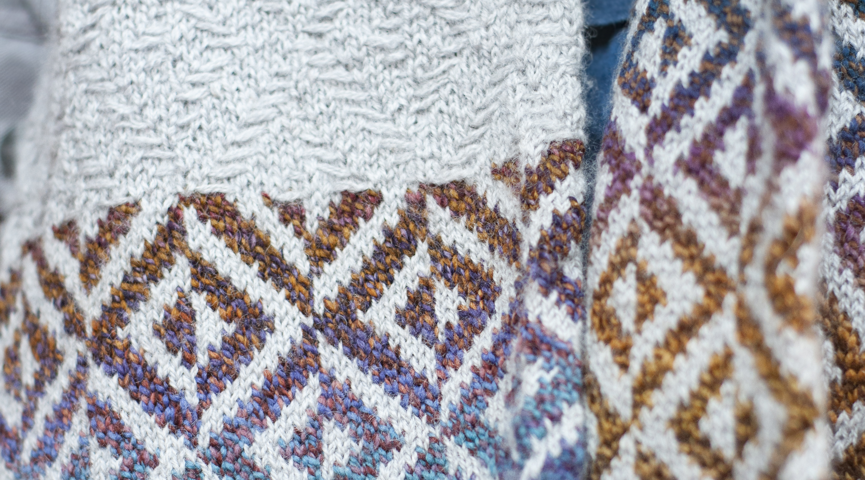 Circular Reasoning is worked in the round, beginning with a two colour stranded colourwork pattern and ending with alternating bands of stranded colourwork and slipped stitch texture. The ends are then grafted together to make a seamless double loop cowl. While the slipped stitch pattern adds a textural element, you can also do the entire scarf in stranded colourwork, in which case you will need 463 yds/423m of Dyed in the Wool and 926 yds/846m of Debauchery (or 463 yds/423m of sport weight yarn).