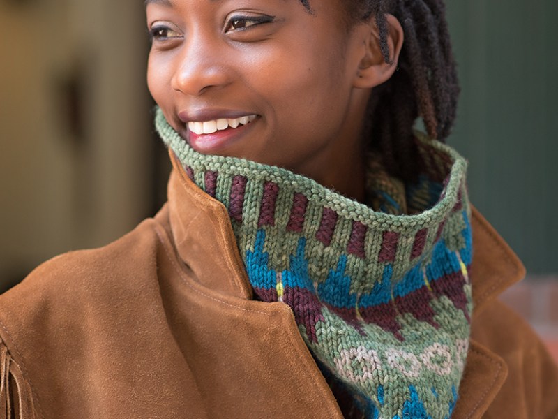 Designed for Windham Mini-skeins, this soft, cozy cowl lets you play with colour in a fairly quick project that will keep you warm on those windy days. Dionisio Point is worked in the round in stranded colourwork from top to bottom, starting and ending with corrugated ribbing. Subtle shaping allows the cowl to sit nicely on the shoulders. To make Dionisio Point, you will need to know how to work stranded colourwork in the round and read colourwork charts.