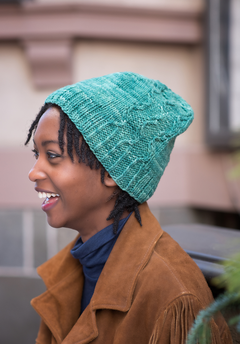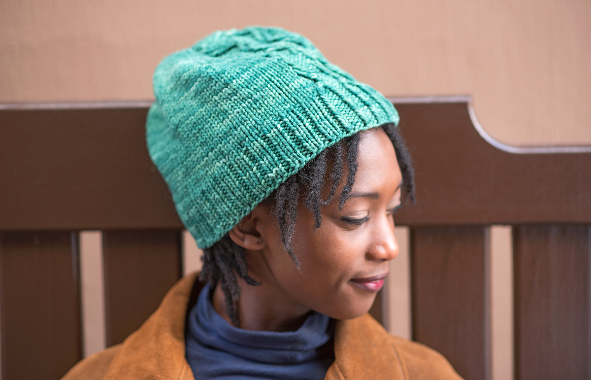 Ministik 2 is inspired by a bird sanctuary near my aunt and uncle’s home in Alberta, Canada; the sanctuary’s name, ‘Ministik’, comes from the Cree word for island. The twisted stitch pattern mimics the wavelets on the water in summer and on the snow during their extraordinarily cold winters. This hat is worked in the round from brim to crown, using knit, purl, k2tog, ssk, m1, and 2-stitch cables. Pattern instructions are both charted and written, and include instructions for working the cables without a cable needle. Ministik 2 is based on my design for Knit Now, Issue 55; this version is worked at a different gauge and with different crown shaping.