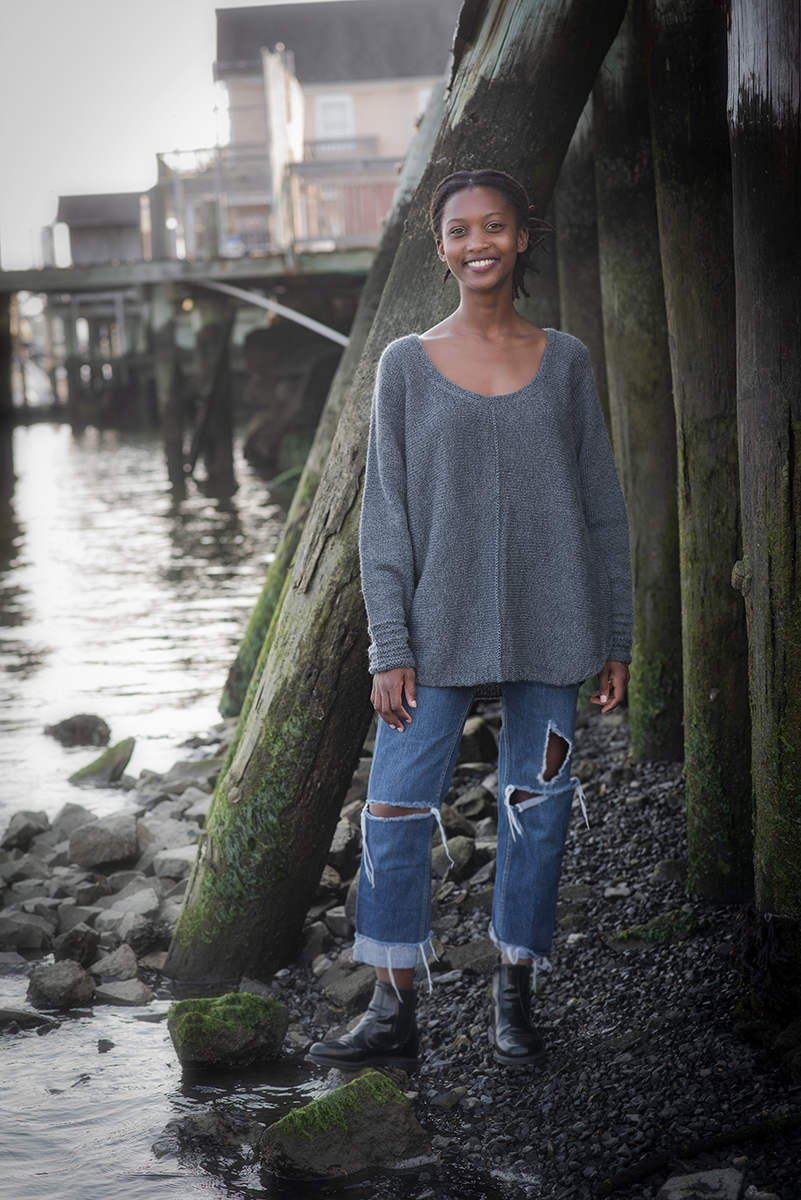 Yarn: Shibui Knits Nest (75% fine highland wool, 25% alpaca; 175 yds/146m per 1.76 oz/50g): 7 (8, 8, 9) (10, 11, 11) (12, 13, 14) skeins (shown in Graphite)
